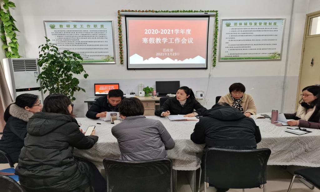 2021年1月23日下午,思政部在行政楼四楼团体咨询室召开2020—2021学年度寒假教学工作会议,会议由刘冬霞主任主持,思政部班子成员和教研室主任参加会议。
