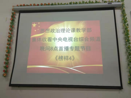按照周口职业技术学院党政办公室组织部关于组织收看中央组织部和中央广播电视总台联合录制的《榜样4》专题节目的要求,思想政治理论课教学部于10月21日晚上8点在行政楼四楼团体心理咨询室组织党员教师进行了集体观看。