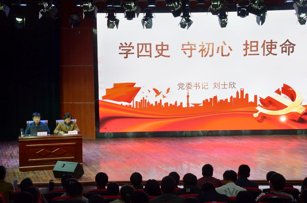 为深入学习贯彻习近平总书记在党史学习教育动员大会上的重要讲话精神,3月24日下午,学校在开元校区砺德厅举办党史学习教育专题报告会。校党委书记刘士欣做题为“学四史 守初心 担使命”的报告。思政部主任、学生处负责人刘冬霞、各二级院(部)学管副院长、学管办主任、19级20级全体辅导员、全体学生干部以及学生党员代表800余人参加了报告会,报告会由副校长李秀萍主持。