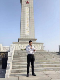活动开始,全体奏唱国歌,向烈士默哀、鞠躬,贾涛书记代表师生向烈士敬献花篮。接着,贾涛书记勉励师生要铭记历史使命,秉承先烈遗志,乘势而上、不懈追求。优秀学生代表张喜涵,号召全体社员发扬革命精神和牺牲精神,努力成为具有高尚思想品质和良好道德修养的合格建设者和接班人!随后,全体师生参观了烈士公墓并了解英雄事迹、祭扫陵园。