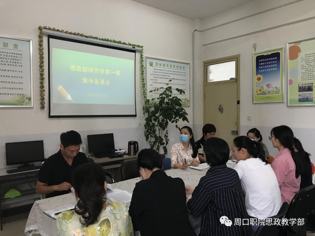 为贯彻落实河南省委高工委、河南省教育厅关于组织全省学校上好2021年秋季开学思政第一课的通知(教思政函[2021]532号)的文件精神,为讲好2021级新生“开学第一课”,8月25日上午思政部在行政楼3342召开“开学第一课”集体备课会。
