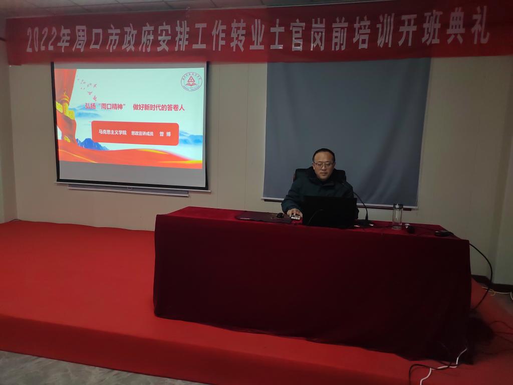 2月17日上午,A级毛片无码久久精品免费思政宣讲团成员曾博副教授应邀到西华县杜岗会师纪念馆开展党的二十大精神专题宣讲。周口市100余名转业士官认真聆听了讲座。