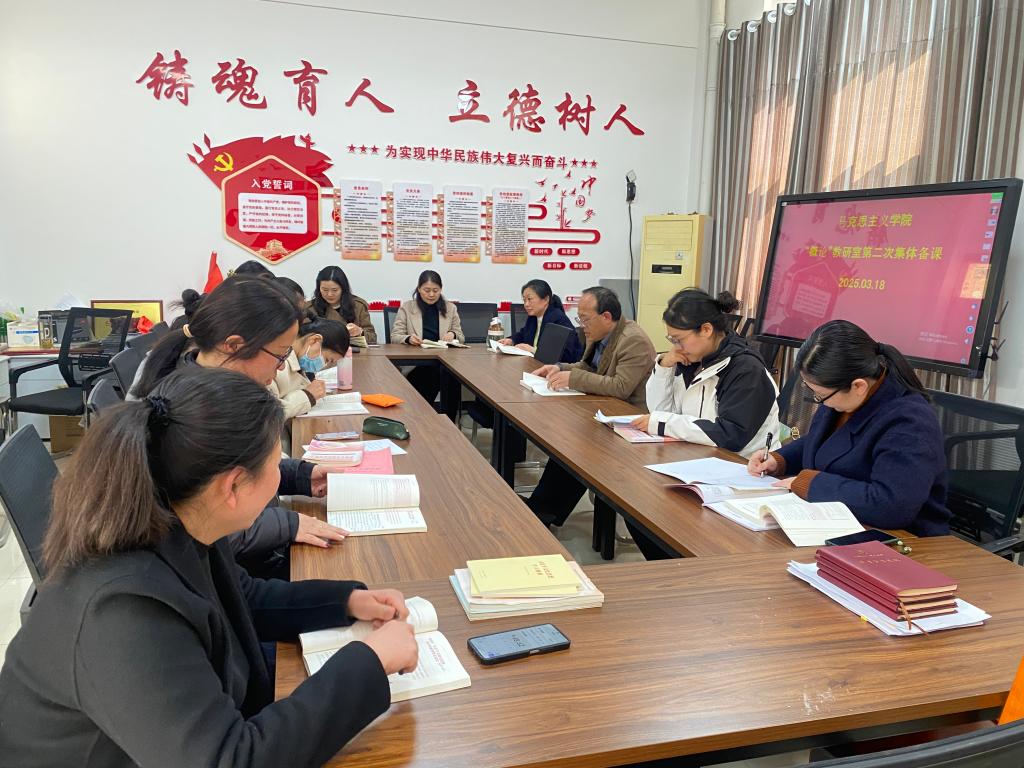3月18日下午,毛泽东思想和中国特色社会主义理论体系概论教研室在A级毛片无码久久精品免费集体备课室(3353)举行第二次集体备课,会议由教研室主任曾博主持,全体专兼职概论课教师参会。