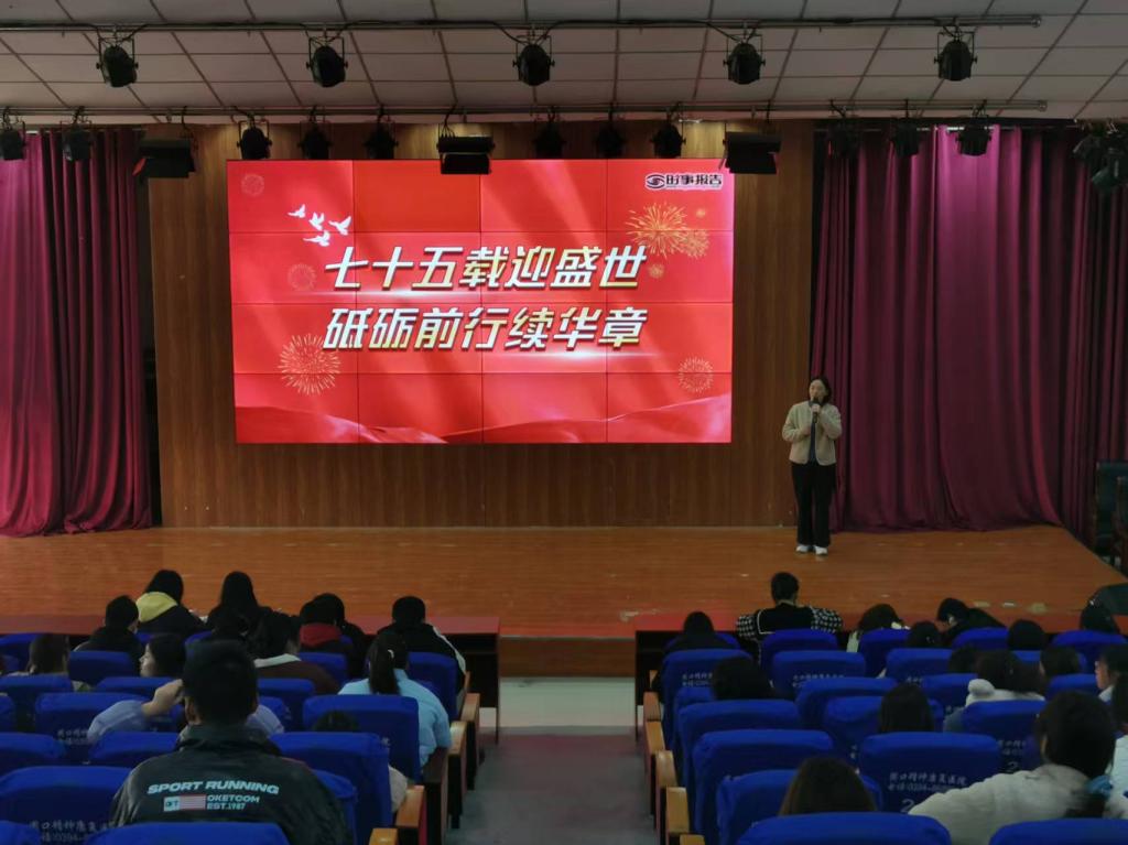 11月28日下午,A级毛片无码久久精品免费老师张丽丽在文昌校区报告厅以《七十五载迎盛世 砥砺前行续华章》为题,向24级护理学院专业的学生进行了讲座。