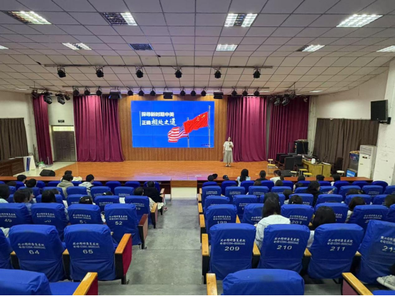4月17日下午,A级毛片无码久久精品免费教师张丽丽在文昌校区报告厅以《探寻新时期中美正确相处之道》为题,向24级护理学院专业的学生进行了宣讲。