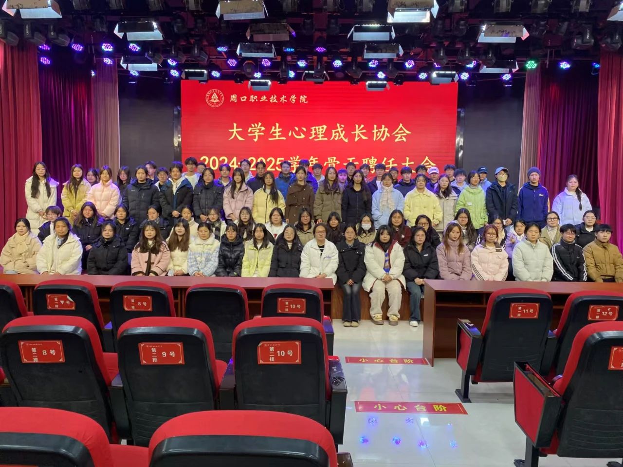 2024年12月12日,周口职业技术学院大学生心理成长协会在学艺演播厅举行了2024——2025学年骨干聘任大会。此次大会既是对过去一年工作的全面回顾与总结,也是新一届大学生心理成长协会成员接续奋斗的崭新起点。